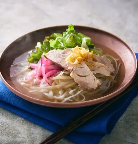 融合の定番麺メニュー。鶏の旨みが感じられるスープでフォーを味わう。